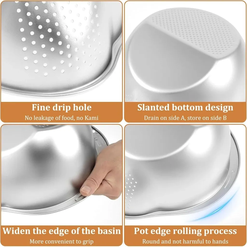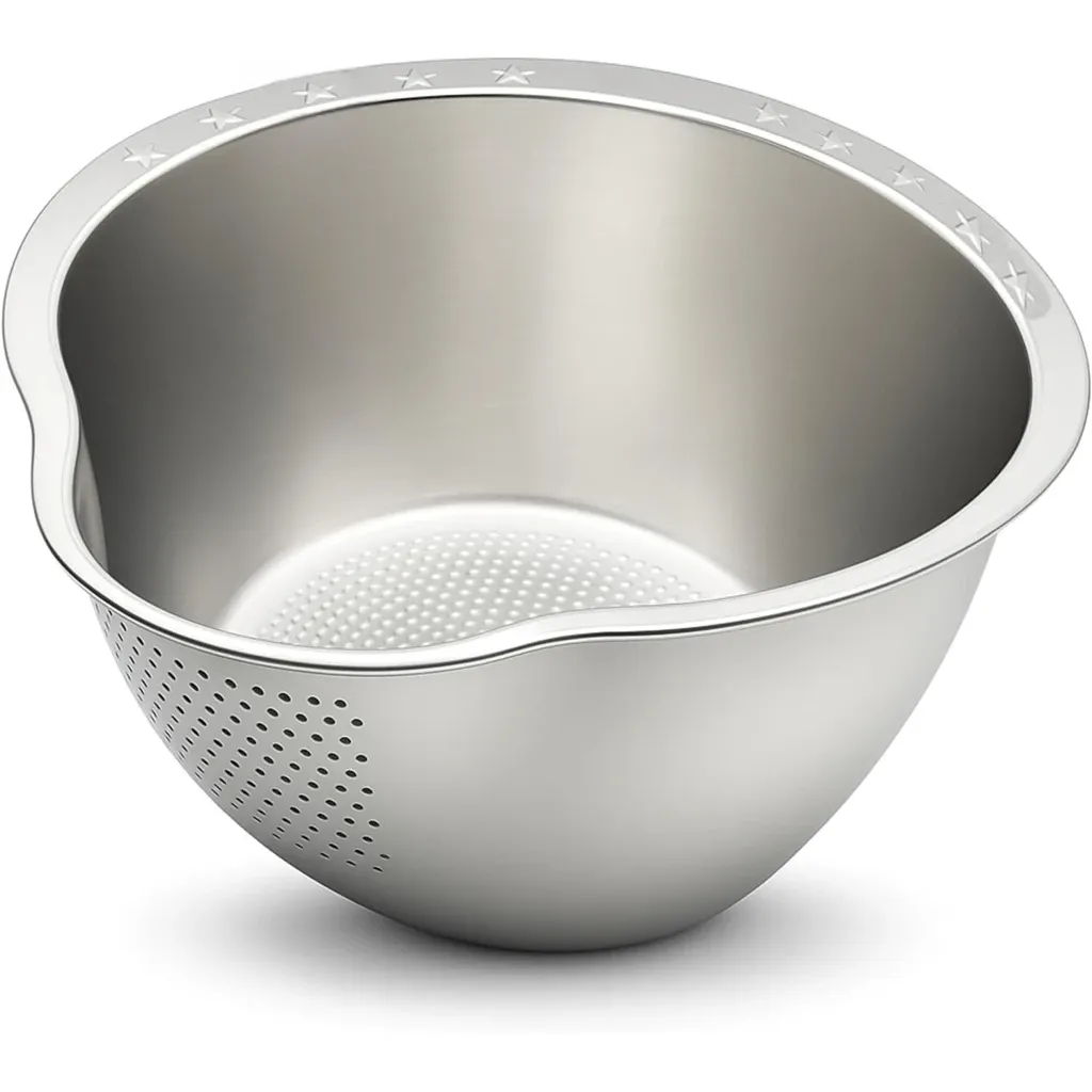 • Efficient and Safe to Use: The evenly spaced drainage holes on the side of the strainer offer fast draining while keeping rice, vegetables, and fruits in the bowl. This makes it easy and safe to use for any home cook or professional chef. Also can be used as salad bowl, fruit bowl for kitchen counter.