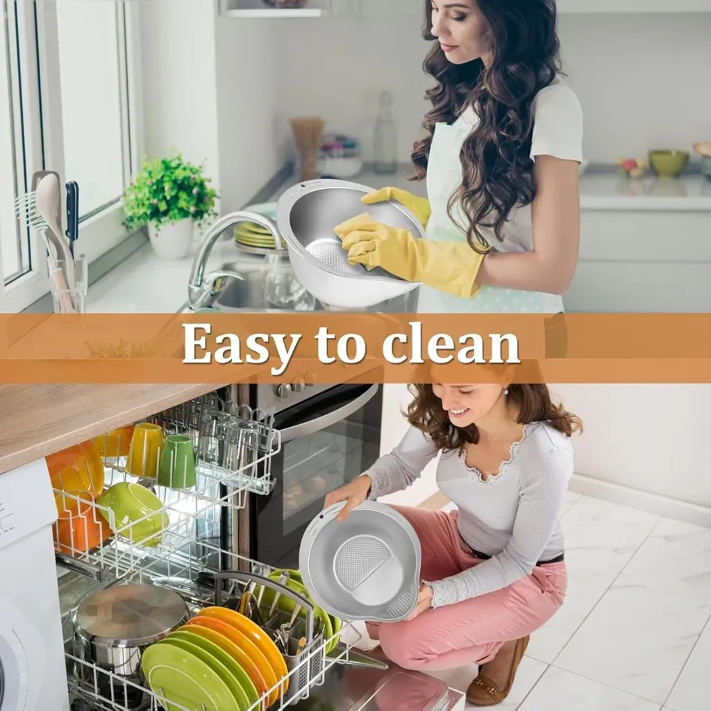 You're viewing: in- Stainless Steel Rice Washer & Strainer Bowl | Fine Mesh Colander with Side Drainers for Washing Rice, Quinoa, Fruits, Vegetables & Beans | Multipurpose Kitchen Tool | Silver د.إ39.00