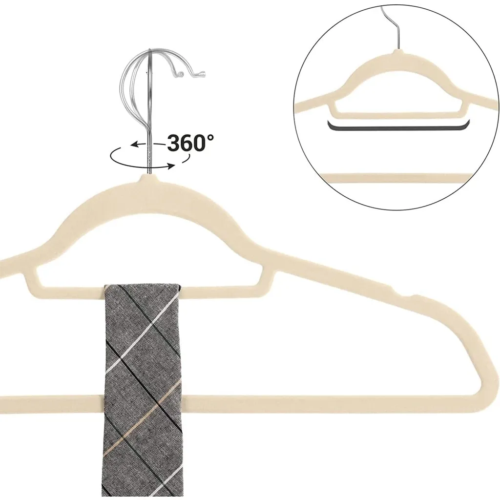 Red Dot Gift-Pack Beige Non-Slip Velvet Hangers cm With Degree Rotatable Hook - Durable & Slim - Non Slip Hangers for Coat Hangers - Pant Hangers